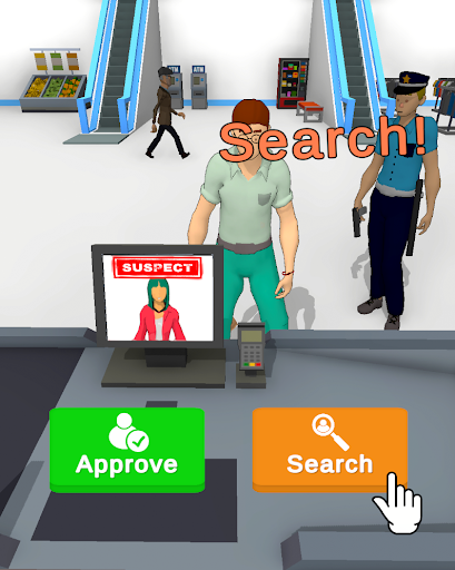Search customers for stolen items by scanning. Whether check every customer or look for the suspect one, it's up to you. Don't let thiefs escape from mall with stolen items!