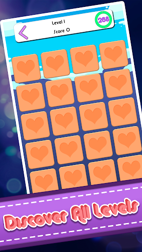 For each level, player is required to tap the square buttons and need to memorize what is behind it in order to match its couple. Players are required to complete a level in minimum finger taps to match all princesses.