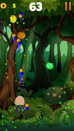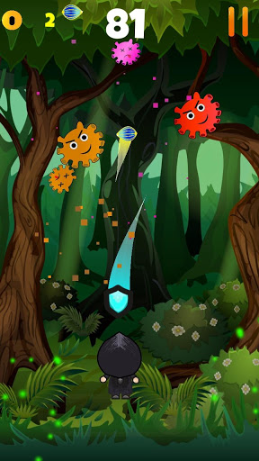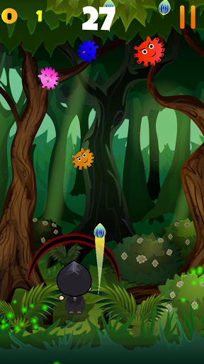 Shoot colored capsules at enemies in the forest without letting yourself be touched by them.