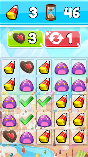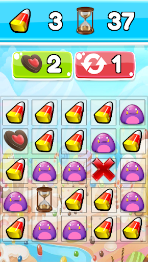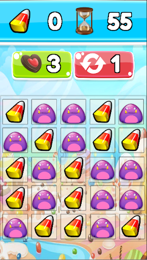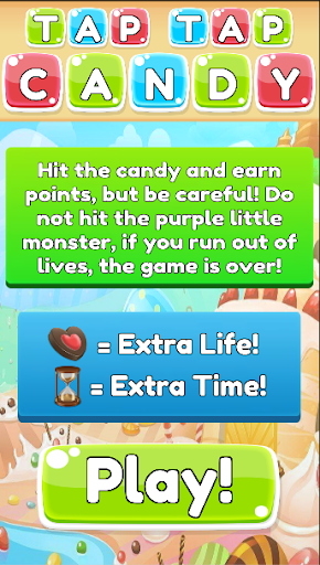 Hit the candy and earn points, but be careful! Do not hit the purple little monster, if you run out of lives, the game is over!