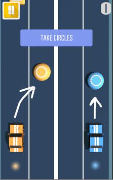 1. Tap screen to control cars, left tap to control red car and right tap to control right car.
