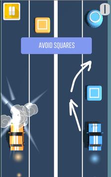 Control the orange car and the blue car at the same time. Collect all the circles and avoid the squares on the road.