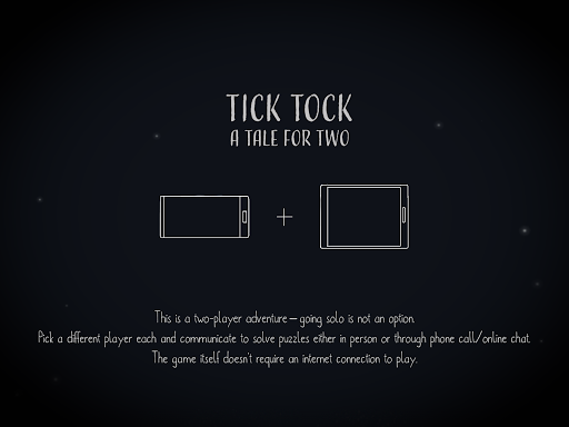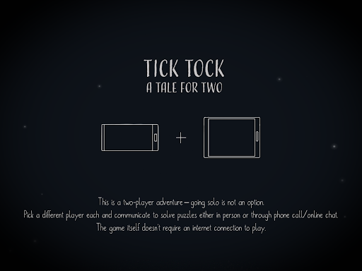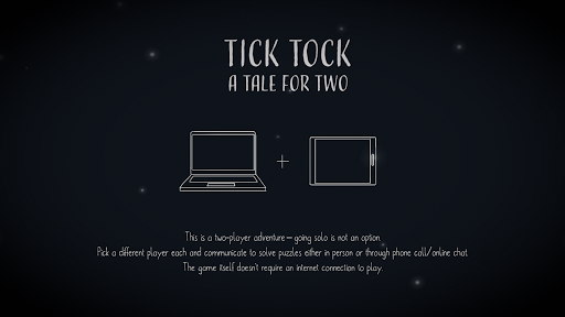 Tick Tock: A Tale for Two is an eerie cooperative puzzle game for two players. Each player needs a copy of the game on their own mobile device (phone or tablet) to play. You can also play cross-platform.