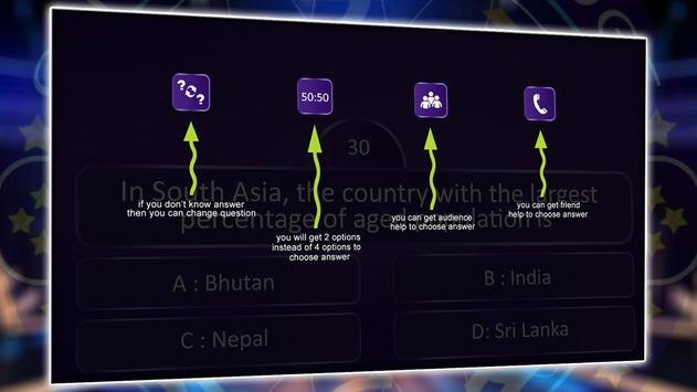 :Fundamental motivation behind Kbc Hindi 2017 amusement is setting up your self and as we as a whole know, there is a considerable measure of degree for Indian youth in aggressive exams like IAS, IPS, GPSC(Gujarat Public Service Commission), UPSC(Union Public Service Commission). SSC, Bank Exams or Clerk PO exams. To raise your IQ and mind with amusement we have made this New kbc diversion and this is the very refreshed amusement with cool designs and astounding sound that will give you the experience as though like you are perched on the Hot Seat at the arrangement of kbc.