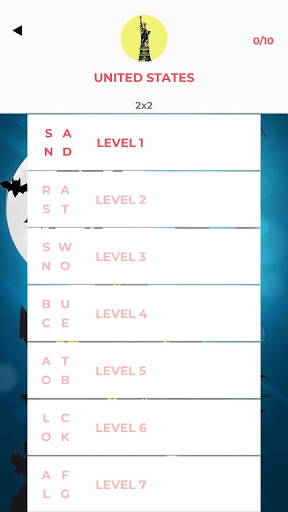 Get ready to be a detective with the words you'll find by scrolling through our word puzzle game, starting with 2x2 and continuing to 7x7 puzzle!