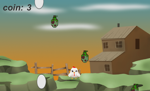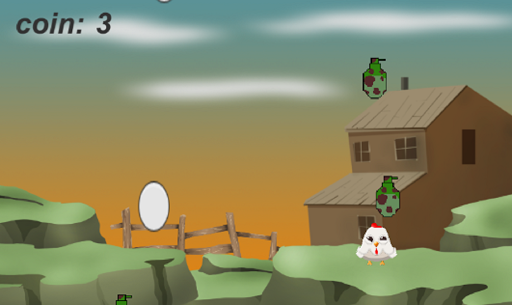 Собирай яйца, что бы можно было купить новых персонажей и играть за них. Но так же главное не забывать уклонятся от бомб, что летят сверху и в любую секунду могут свалится прямо на голову вашей курочки.