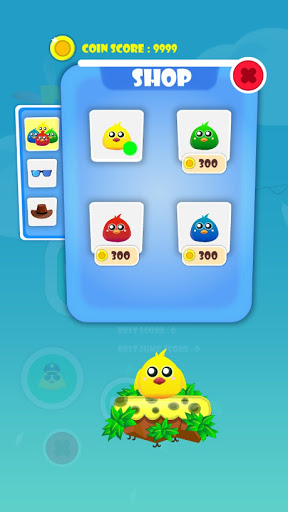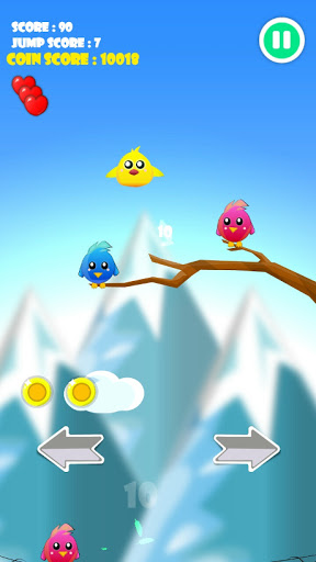 You control a little cute bird who wants to fly as high as it can, but its not very good as flying and so it has to jump on other birds’ heads to get higher (it may not be fair, but it’s effective Along the way, there are balloons that you can also jump on them to collect the reward attach to them like extra lives. These extra lives can be very useful because you will lose one your 3 lives whenever you hit other objects like hammers and balls that are thrown in the screen! Also try to gather as many coins as you can because you can use these coins to purchase new birds or accessories for them to look cooler! As you can guess, you will lose when you fall down or run out of lives. So try your best and see how far you can proceed.