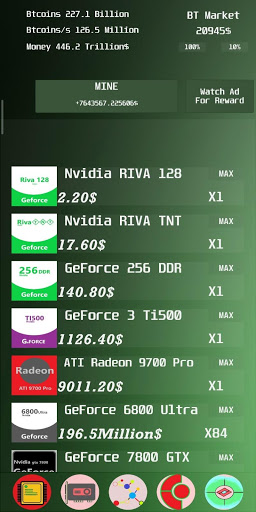 Idle BtCoins Mining Game is An Idle Game where you mine Btcoins with your rig and sell them to the current Btcoin market price and then you use the earnings to buy a better and more powerful rig. There are a lot of upgrades and also you can work for popular firms to get a reward.
