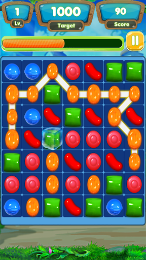 Gameplay is absolutely simple and easy to understand. Connect 3 or more candies together to make them disappear.
