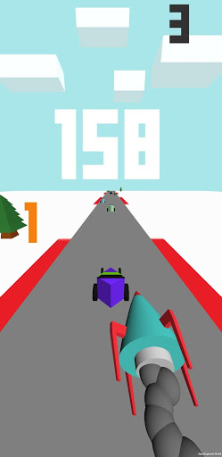 Drag your finger back and forth to avoid knocking into the other racers. Collect the rocket item to gain invincibility. The game gets harder as you go, so watch out!