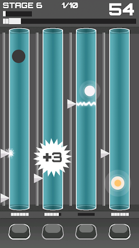 Balls fall through the four pipes. Push the buttons at the right time to activate the triggers and pop them.