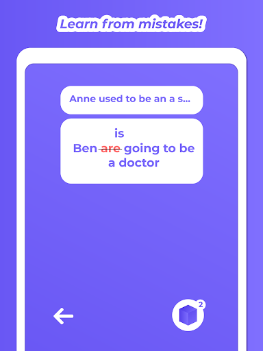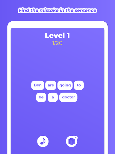 The best way to learn and remember is to make sure you combine learning and playing! With our game you can easily upgrade your English language knowledge by finding mistakes in the sentences and correct it. It has never been easier to learn grammar and stay in a playable mood. Our game is specifically designed for learning and remembering, you can find all your mistakes saved in the box, so after every game you get better and better. New levels and challenges are on the way!