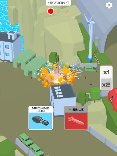 Protect your troops and defend your base! You are controlling an aircraft equipped with different weapons. Your mission is to prevent the enemy from conquering your base. You can destroy buildings and bridges and make cars and gas tank explode!