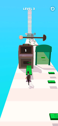 You should start a money-collecting game and start collecting money in the money rush or ATM rush game. you have to save yourself from trouble to reach your destination. When you collect money in cash you have two options before your destination. one is Bank ATM (ATM Rush) to save your money and take it later in the end and another is that you will have a green color glass. when you go with your money there your cash money will be converted into gold and again if you go with gold in the same way then your gold will be converted into diamonds. so this is how this money rush game works.