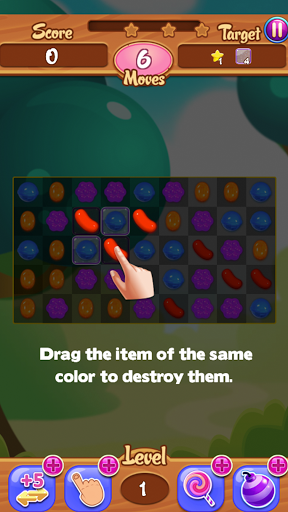 This candy game is a simple candy matching game with no complicated features. You have to match 3 or more candies of the same color and smash them. After smashing a certain number of candies, you'll go to the next level and earn some points. Matching more than 4 candies produces a bomb that can destroy an entire row.