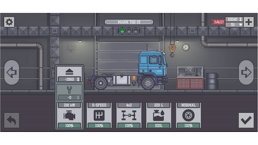 * improve the truck: engine, gearbox, transmission, fuel tank, tires and so on