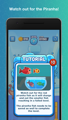 Hurry up to rescue all the fish as the water level quickly drops to dry land! All the fish need rescuing but be careful of the predator Piranha Fish as its hungry and searching to prey on smaller fish.