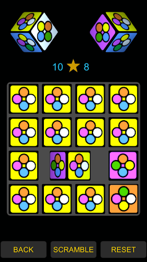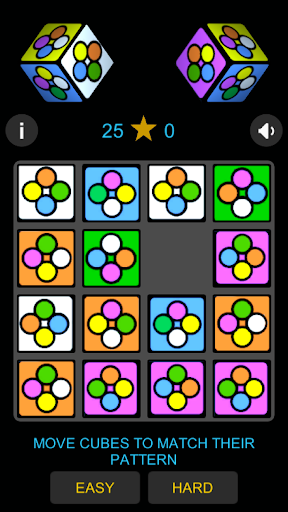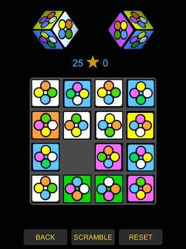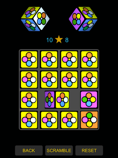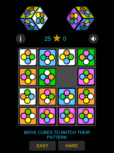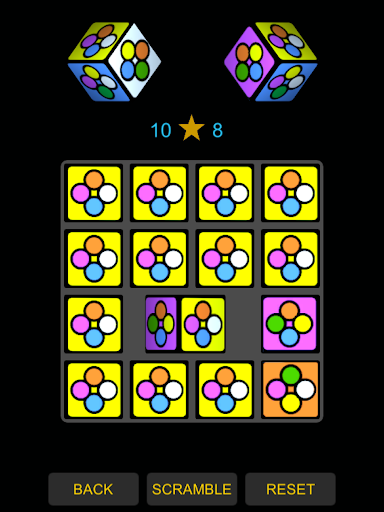 The goal is to rotate the cubes until each one will end up with the same pattern.