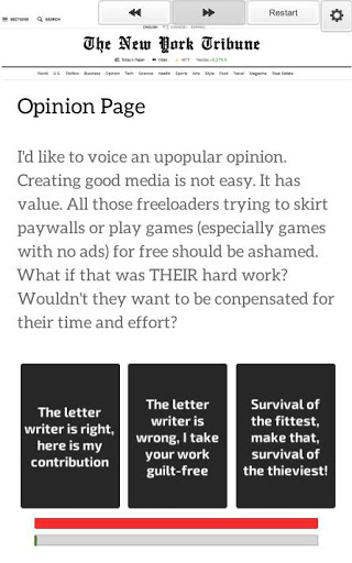 The whole thing is playable without spending a single dime. But can you solve the vague, poorly written, totally unfunny tests? Do you have what it takes to enjoy the challenge and never, not once, fall victim to the hundreds of devious enemies (paywalls) you face?