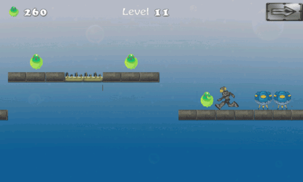 Here you come in charge. You need to help monkey collect all these power batteries scatterd in the alien spaceship. Monkey has planned to go in the space and collect all the batteries as soon as possible. He needs your help to hunt for these batteries and to be safe as well. There a so many obstacles and dangers in the