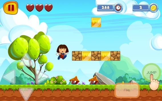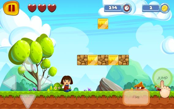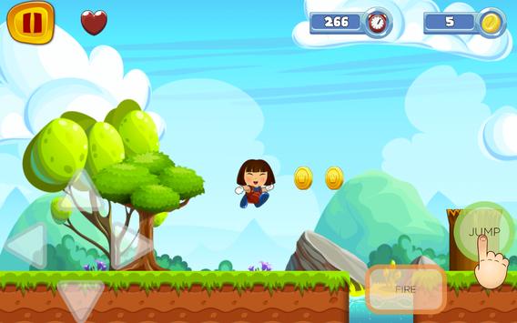 dorA jumps and runs across all enemies. every level was very interesting and thrilling.