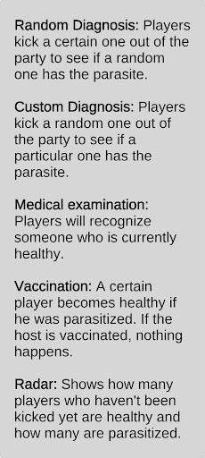 One of the players will have the parasite. Depending on the mode, the host will know if they have it.