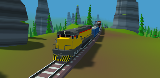 Experience the thrill of driving a freight train with TrainWorks, a low poly train simulator game for Android. Transport goods across a vast and detailed map, featuring forests, mountains, and cities.