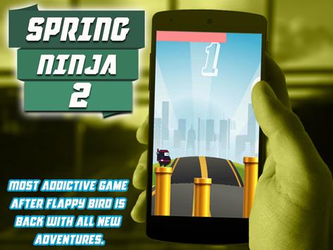 Spring Ninja 2: have you ever think about fly from one place to other in zigzag or with wings if yes then try this new arcade gift for this new year spring ninja 2 and ketcapp bring you the most loving and addictive game after flappy bird but due to some issue in game play of first version we have launched our new and latest version to improve game play and believe us its now amazing. spring ninja 2 comes with new and intresting concept of jump the fat ninja man but this time not only ninja we have added more the six player model with different styles. so not jump ninja just jump you player from one wall to other and earn points achive milstone to unlock new charector. super ninja jump game with unlimited fun and endless runner mechine to kill your free time, just like zig zag this is alsonest ninja game of this year and we hope youwilllove this new update of spring ninja with springs, wings and other flying objects. just try this new spring ninja and give us your review and feedback to make it perfect ninja game.