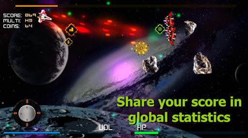 You can choose any song from your device and play a space shooter that is adjusted to this music. If you prefer to play a whole playlist at once, that is not a problem!