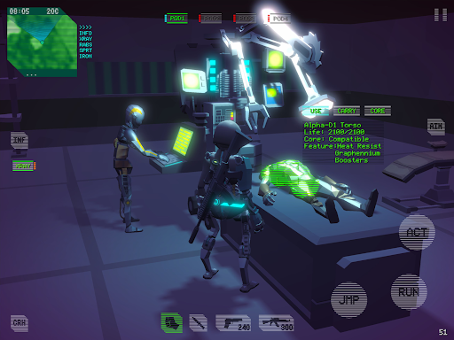 - As a robot you have full interchangeable limbs and body with almost all other robots in the game. And this is done with real time animations without menus.