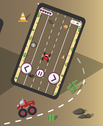 Simple controls and a simple game interface adapted for children. Two buttons to control the children's machine (right and left). Rush along the track and go around obstacles (five roads to drive). Running over an obstacle one life is taken away from your typewriter. In total, the machine has five health units. There are three types of tracks in the game, but we are working on increasing the number of game tracks. Also the pause button. You can pause the game at any time. Ability to turn off the background tracks in the game. Playing this game is simple and interesting, especially for children.