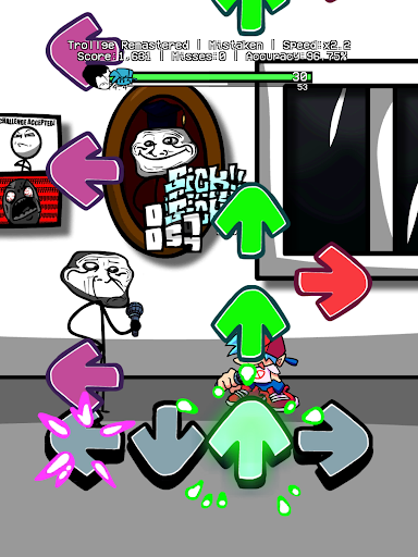 Game Note: Boyfriend defeats everyone who crosses his path, making Daddy Dearest think about his options, he still thinks BF doesn't deserve his daughter Girlfriend, and to put him in danger again, he sends Boyfriend and Girlfriend to another dimension, Bf and Gf wake up in a room full with pictures of memes, everyone of them including Trollface.