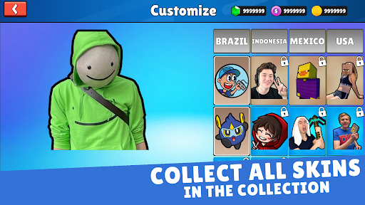 If you are a fan of Stumble Guys, this is the game for you. Have fun discovering new special blogger skins, with Skin Stumble Blogger Guys you can unlock the most popular bloggers from Indonesia, Brazil, Mexico and USA. Earn a lot of gems and exchange them for a token. Collect all the bloggers and play many unique mini-games.