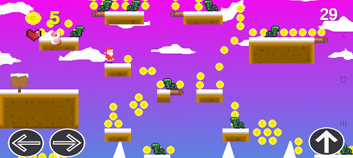 Christmas is upon us, navigate through weird and wonderful terrains to collect the coins. Avoid the snakes at all costs, a bite from a snake will cause you to lose a life!