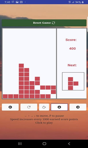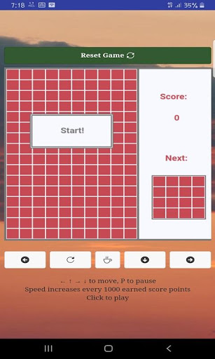 • Place the blocks pieces into board. Once you fill in a vertical or horizontal line, it will disappear, freeing up space for new pieces.