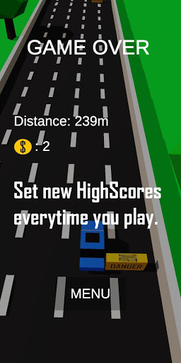 Drive and compete In a world where all that exists is one endless road, a few cars, and way too many roadblocks. The player has the goal to drive their car further than anyone has ever gone before, to claim the title of "Greatest of All Time🏆". This fast paced racing game will put your reflexes to the test as extreme speeds and obstacles will keep your attention throughout. Dive in to the addicting game play that Block Drive has to offer with its simple, yet intuitive mechanics, which will keep you entertained whenever you want to be.