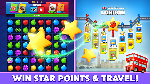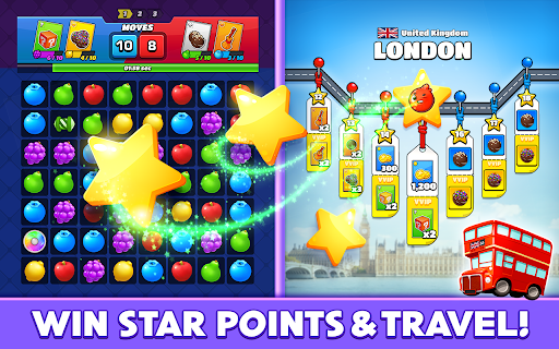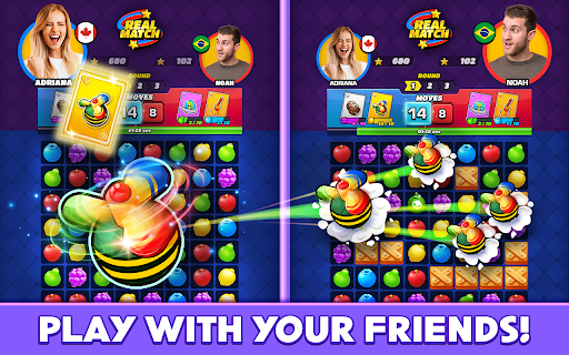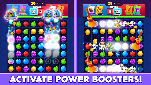 Match fruit, earn points, collect power ups! Win your opponent in fun PVP Match 3 mini games.