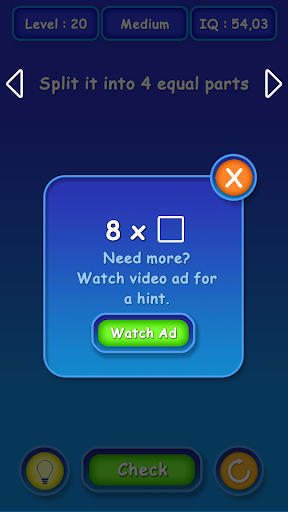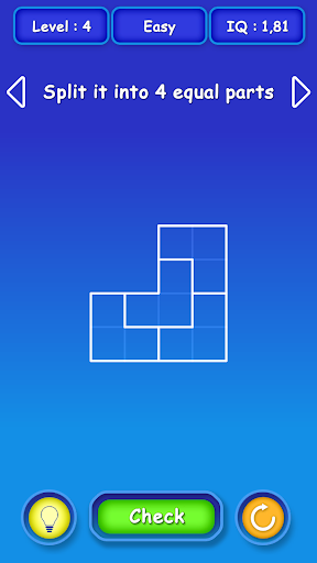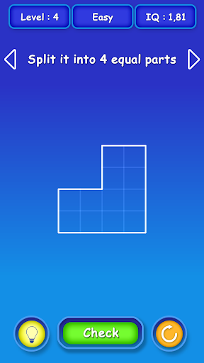 With Splity you can test your IQ and train your brain in a very fun way, by solving logic puzzles. There are 4 different modes to play in each with 230 levels so almost 900 fun puzzles. Each puzzle presents a certain shape that you must then cleverly divide into equal parts. Stuck on a level? Use the hints to see what you should do (and trust me you'll be stuck as puzzles get tougher).