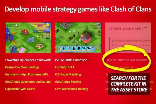 A demo game build with the City Building Game Kit for Unity. With this game kit you can develop mobile strategy games and wage war against other player villages. Win loot and destroy bases in this fantasy game demo.