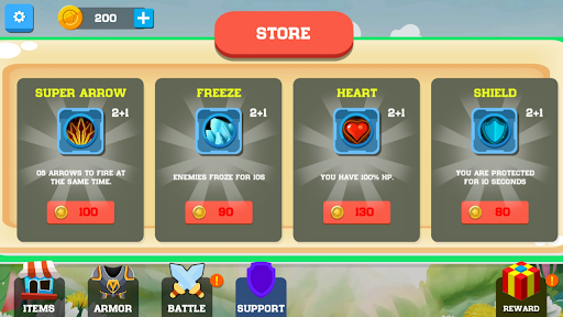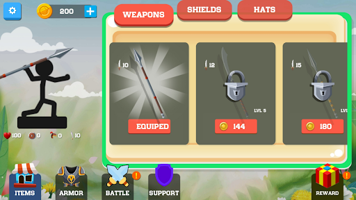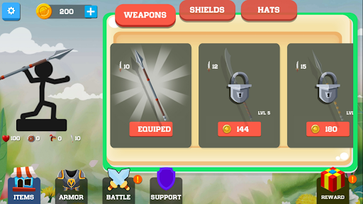 ✓ You Can Select from different variety of weapons, Hats, Shields! Get your self a hat and you can upgrade them by collecting coins both!