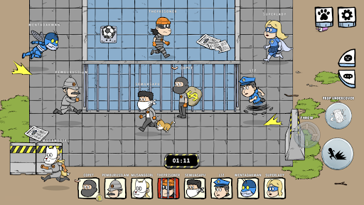Catch all robbers to win the game as a police or hold the ‘money bag’ while evading the police until the timer runs out to win as a robber. Robbers can rescue their friends to escape from the jail and increase the chance to win the game. Police will have to patrol the jail in order to avoid jailbreak!