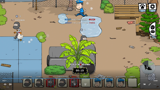 Collect various items in the level such as banana peel, disguise, lock-pick, cabbage, and exploding kitten to aid you in evading and catching or just to create havoc while having fun.