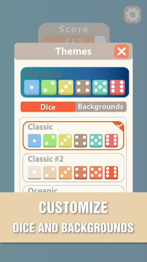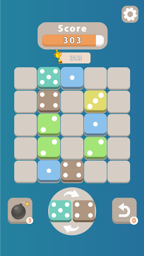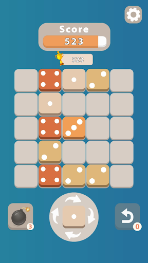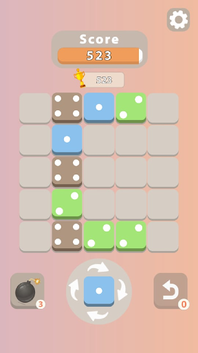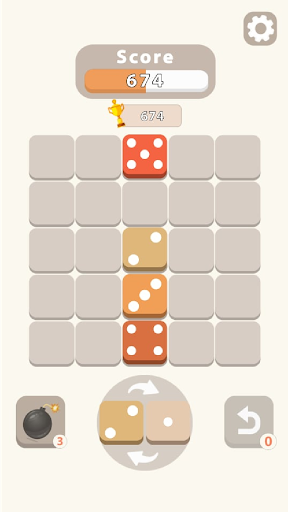 There are 6 dice from 1 to 6. With your intelligence, logical thinking, drag and drop the customizable dice onto the board appropriately to merge three or more dice at the same value together in order to fuse a block of dice with greater value. The goal of the puzzle is to fuse as much dice as you can.