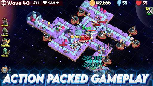 - Unlock, upgrade, and evolve your monsters to defend against spacefaring knights, mages, pirates, and more!