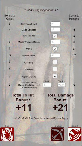 A quick way to calculate attack and damage bonuses