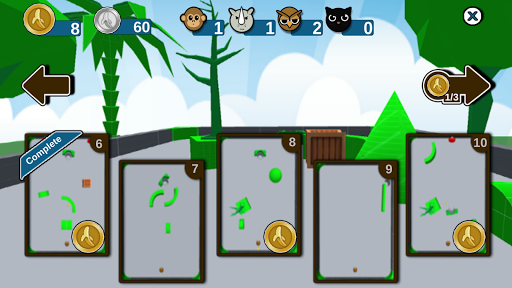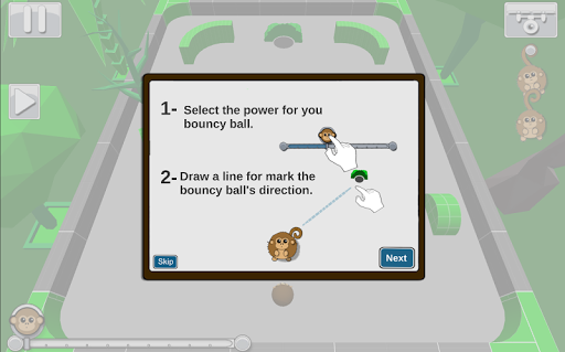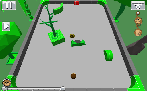 Throw your bouncing monkey and win by getting him into the hole , try again and again until you accomplish your objective. You'll have Cat's , Owl's and grumpy Rhino's help to make your objetive easier and faster to accomplish.