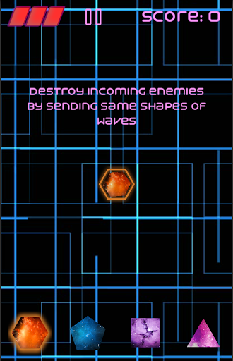 Send same shapes of neon waves to enemies to destroy them!