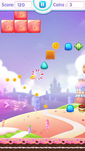 Exploring the lovely fun world of Candy jelly jump , simply jump with colored jelly pops to crush candies and earn coins, Come and enjoy tasty candies and coins to prepare for the next difficult levels.