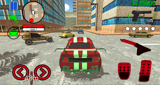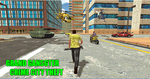 Gangster Theft Real Gang City is a free game that features missions to complete, weapons, buildings, and vehicles to buy.