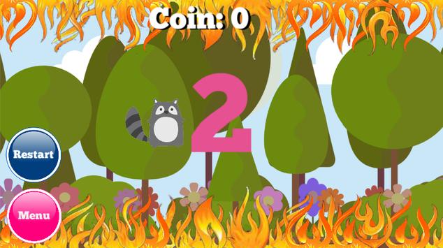 A flappy raccoon. Play with a flappy raccoon, collect coins, avoid obstacles and do not let the animal fall.